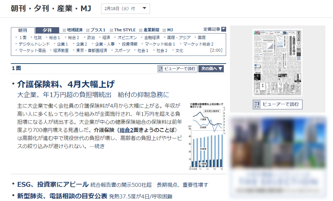朝刊・夕刊の記事が読める