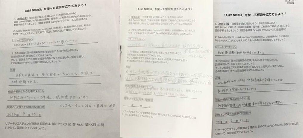 高校2年生の探究活動では仮説を立てるために「Ask! NIKKEI」を活用
