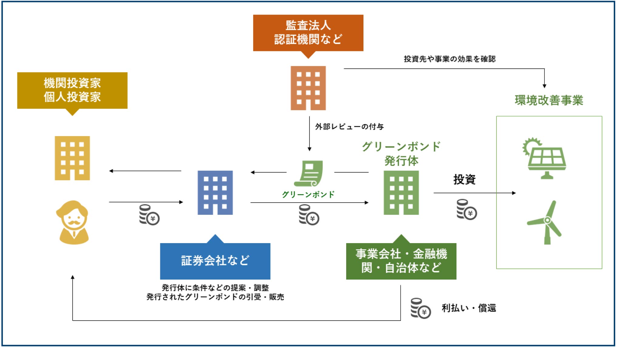 例えば、調達した資金の使い道を再生可能エネルギー関連事業など環境改善効果のある分野に限って発行される債券を「グリーンボンド」と呼びます。「パリ協定」が採択された翌年の16年には世界のグリーンボンド発行額は約850億ドルでしたが、22年には5000億ドルほどに成長しました。日本国内だけでもグリーンボンドは2.5兆円以上発行されています。