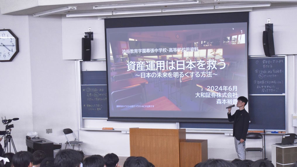 大和証券グループと日本経済新聞社は2024年6月18日、千葉県の千葉県渋谷教育学園幕張高等学校で出張授業を開催しました。昨年から実施してきた、中央大学杉並高等学校(東京・杉並)や石川県立金沢二水高等学校(金沢市)での授業のノウハウを生かしながら、本格的な金融経済教育で新しい学びの実践に取り組みました。