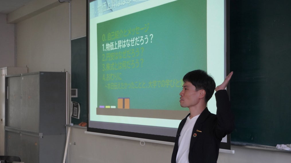 授業後に話を聞いた2年生の小西拓真さんは「もっと難しい話をされるかもと思ってドキドキしていたが、経済の仕組みや物価の仕組みについて非常に分かりやすく説明していただき、面白く聞くことができた」と言います。「普段読んだり見たりする経済のニュースが、意外と身近なもので、生活と密接に関わっていることが知れた」として、経済について新たな学びの意欲が生まれたと振り返りました。