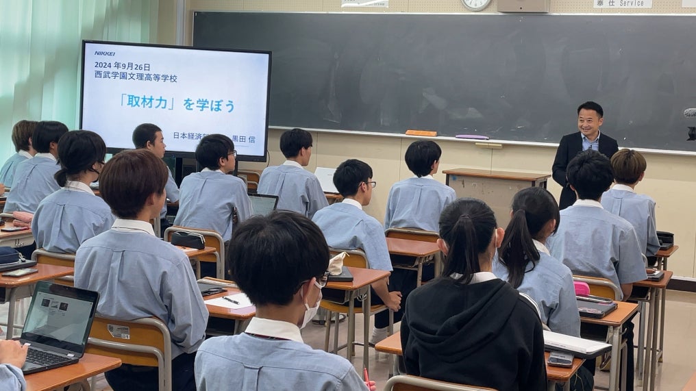 インターネットイニシアティブ(IIJ)と日本経済新聞社は2024 年10月31日、西武学園文理高等学校の「クリエイティブクラス」の1年生を対象にした特別授業を実施しました。日本で初となる商用インターネットを始めたIIJの鈴木幸一会長が埼玉県狭山市の同校キャンパスを訪れました。現在のデジタル社会をゼロから築きあげた先駆者に迫るチャレンジとなりました。