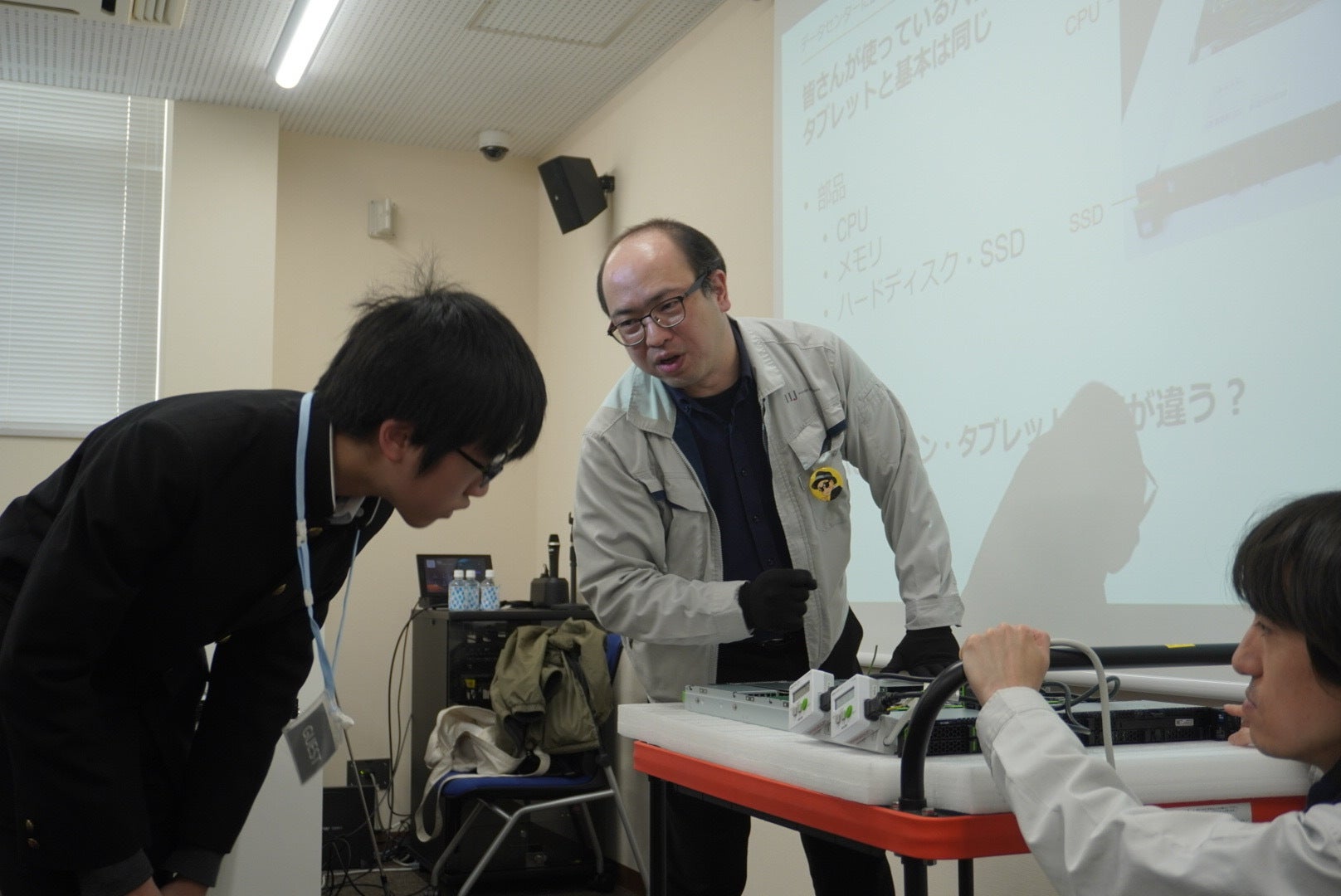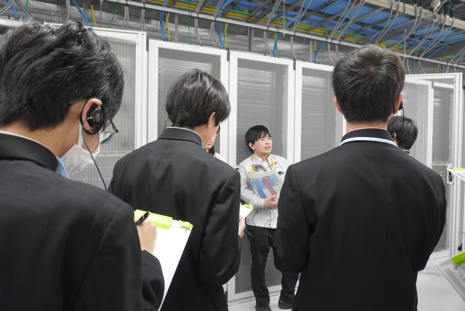 たった1つのCPUでこれほどの電力。そしてこの騒音。もし何万台ものサーバーが並ぶ場所に入ったら——。生徒たちは、事前学習ではわからないデータセンターという施設の現実を実感したようだった。