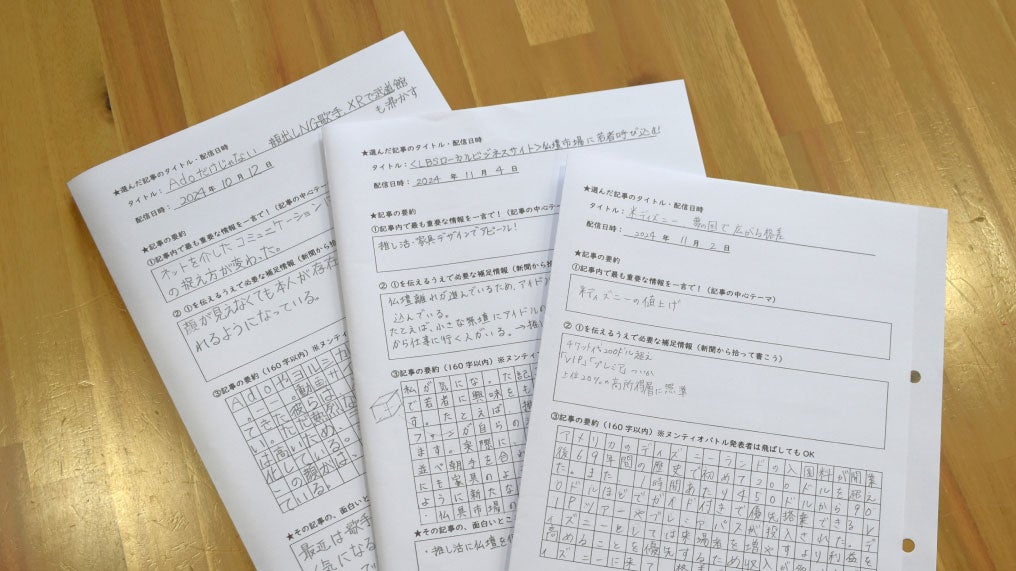 「要約することを通じて、読解力や文章でまとめる力が付くことも期待している。また記事をまとめていく作業なので、生徒たちにとってゼロから作文するよりも取り組みやすい」と、北宮教諭は話す。