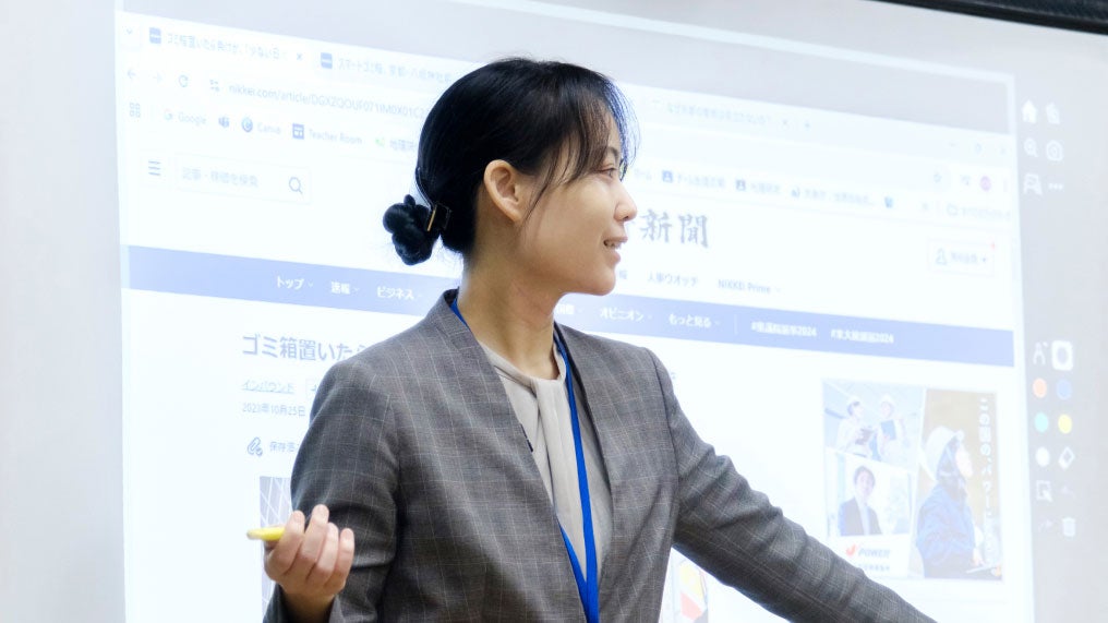 社会科では「一人の主権者として、いかに社会と関わり貢献するかを考える」人物の育成を目指し、情報を読み取る力や、多角的な視点による考察や表現力を養っている。中学1年生の社会科を担当する北宮枝里子教諭は、2023年から中学校の社会科の授業に「日経電子版 for Education」を取り入れた。