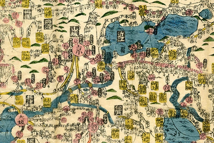 近江とは、いまの滋賀県のこと。近江は、中山道、東海道、北國街道などの主要街道に加え、琵琶湖の水運にも恵まれた交通の要衝(※1)だったのです。近江商人は、これらの陸路・水路を活用して各地へ赴き、商売を広げていきました。