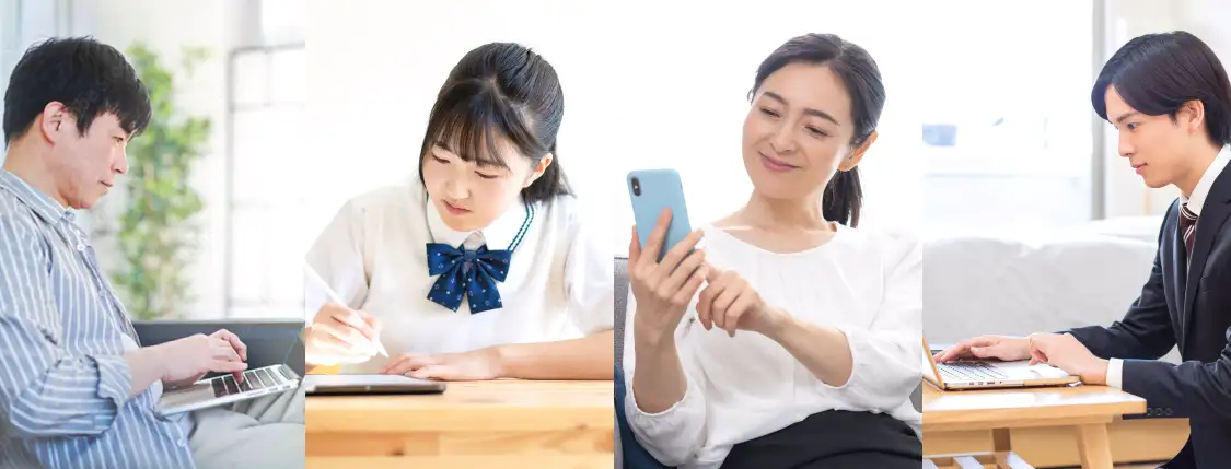 ひとつのIDを使って、PC・スマホ・タブレットでの利用が可能。通勤中など場所を問わず読むことができます。
