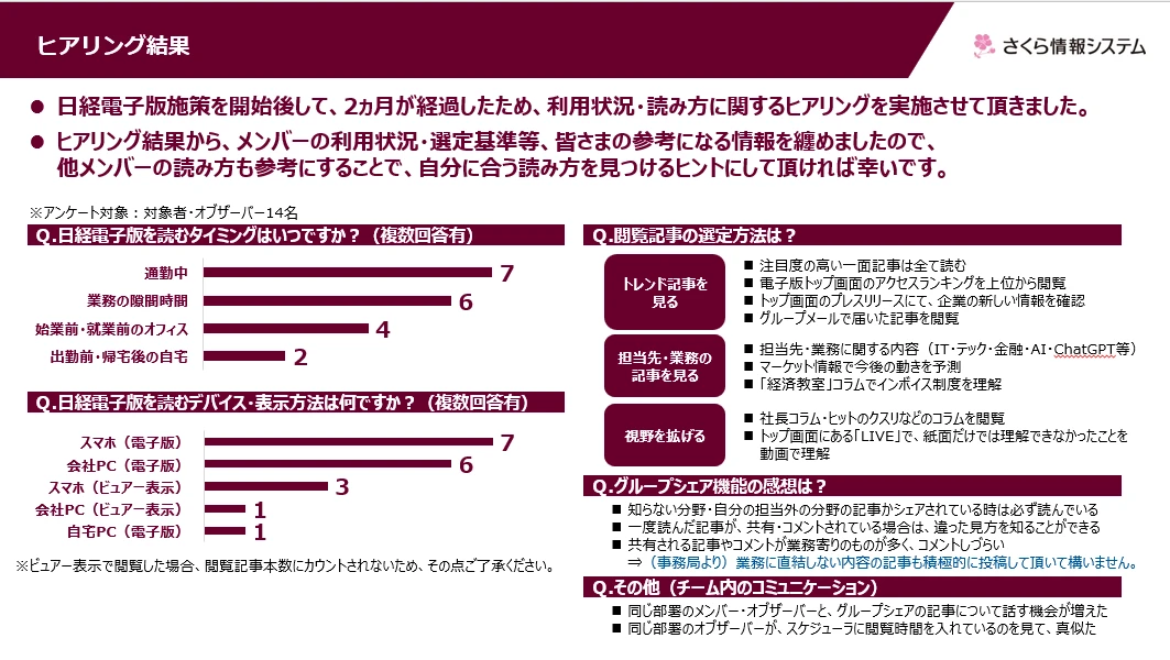 - 上記に加え、日経電子版の活用をヒアリングする中でメンバーとの信頼関係構築や、人材育成観点観点での効果も実感している。