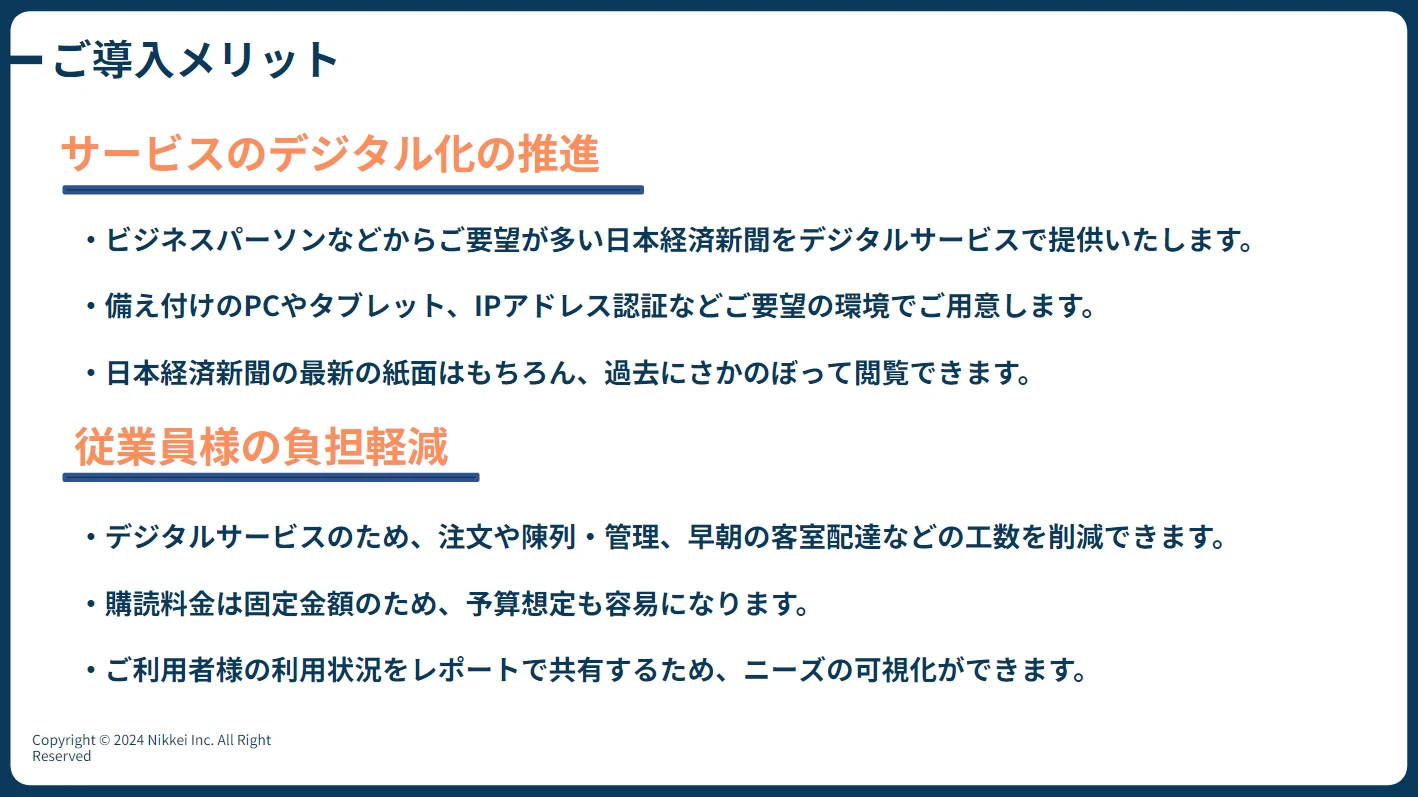 - ホテルやカフェなど施設利用者向け日経電子版「日経電子版 for Location」とは