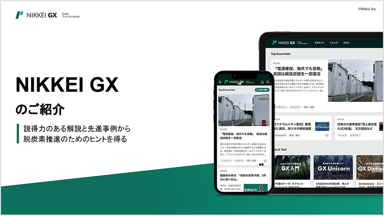 GXを取り巻く動きは、テクノロジー革新・市場変化・政策誘導が複雑に絡み合っています。NIKKEI GXでは、それぞれのテーマを分断せず、相互の影響関係まで含めて整理。日経ならではの視点で、断片ではなく全体像で把握できる「構造化された専門知識」をお届けします。