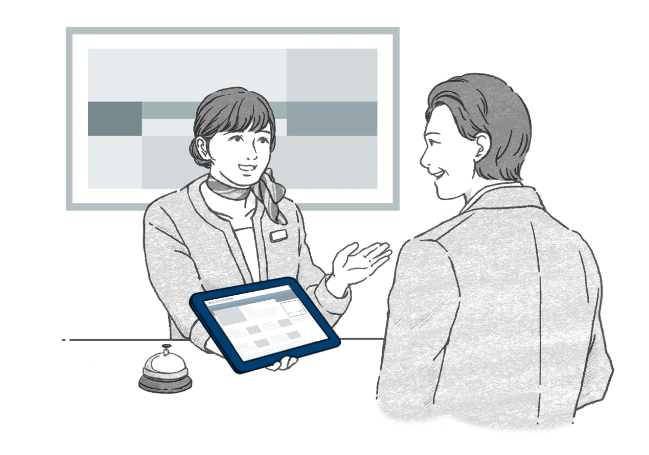 デジタルサービスのため常に最新の情報が提供されます。受付で利用方法をご案内いただくだけです。