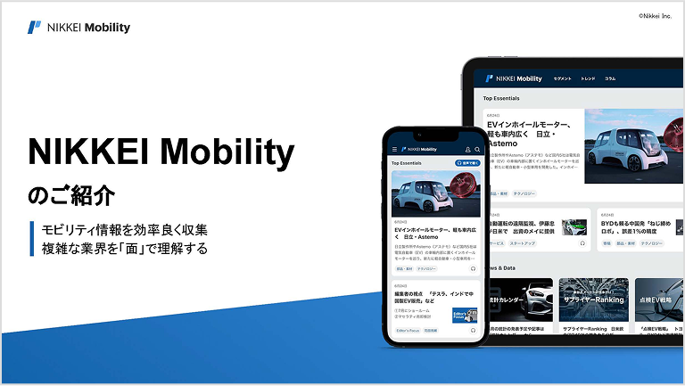 完成車メーカーや有力サプライヤーの戦略転換、技術開発動向、業界キーパーソンの発言などを、タイムリーに発信。日経ならではの徹底した取材とわかりやすい解説で、背景や意図までを把握し、業界の変化の兆しをいち早く捉えることができます。