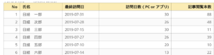 ご希望に応じて、利用者の利用状況を可視化したレポートをご提供します。報告資料としてご活用いただけるほか、よく読まれた記事ランキングなど、社員の閲覧傾向の把握も可能です。