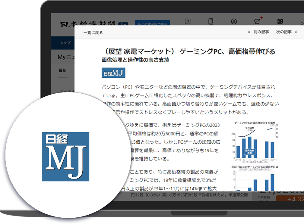検索やフォローにヒットした日経MJの記事を読むことができます。