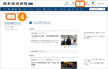 ④ シェアされた記事を読むときは「Myニュース」の「シェア」をクリック