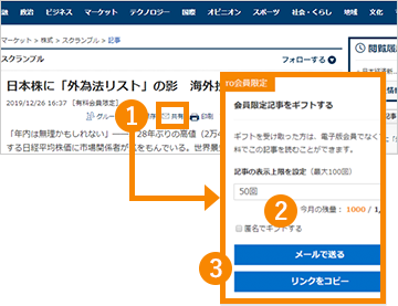 有料会員限定記事を電子版会員以外の方に共有する