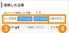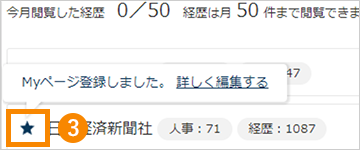 - ③ 企業または個人名のMyページ登録ボタン★をクリックして、登録完了です。もう一度★ボタンを押すと、登録解除になります