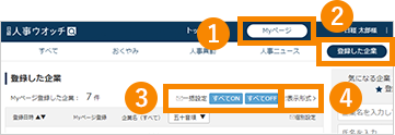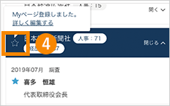 - ④ 企業または個人名のMyページ登録ボタン★をクリックして、登録完了です。もう一度★ボタンを押すと、登録解除になります