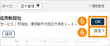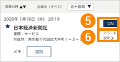 - ⑤ 個別で登録した企業・人物のアラートメール設定をすることも可能です