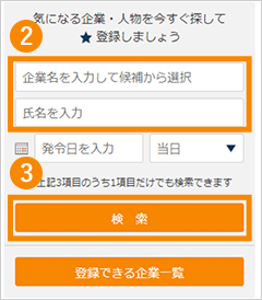 - ② 検索画面から、登録したい企業名または個人名を入力