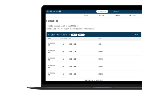 取引先の人事異動や組織再編をメールでお知らせします。また役員などキーパーソンの経歴も確認でき、これらのデータをもとに商談を組み立てることができます。