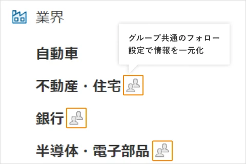 日々膨大な情報が配信される中、日経電子版の「フォロー」「グループシェア」機能を活用することで、チームで必要なニュースの見逃しを防ぎます。
