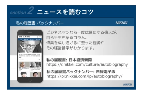 日経電子版の読み方を解説する動画をご提供。ご希望に応じて、オフラインでの解説セミナーも実施します。