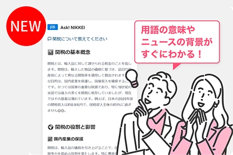 日経電子版の記事を学習したAIが、質問への回答を生成する新機能。用語やニュースの背景がすぐに理解できます。