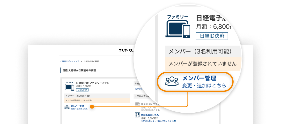 2. ご契約内容の確認ページから「メンバー管理」を開く