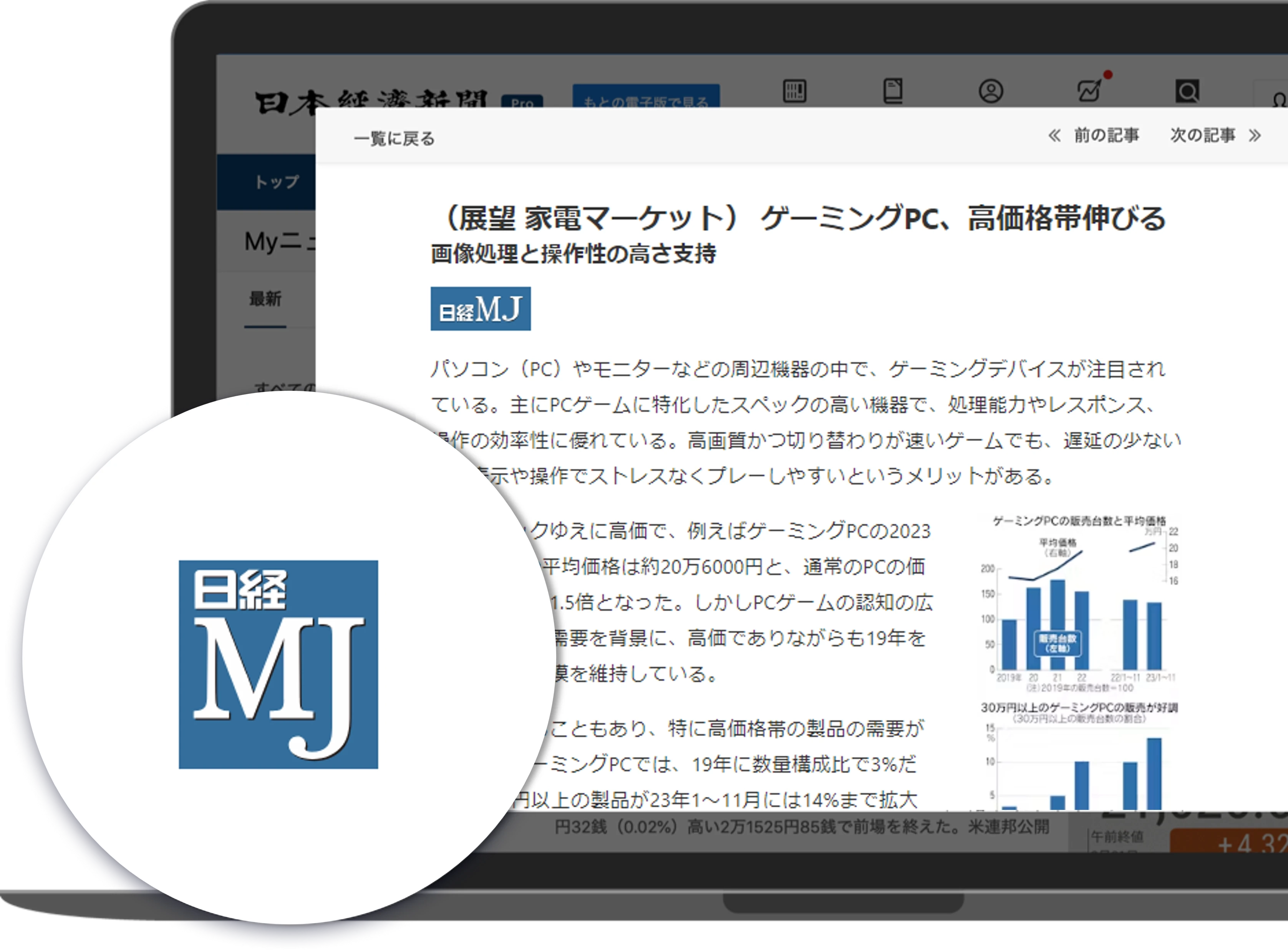 日経電子版Proは、検索やフォローにヒットした日経MJの記事を読むことができます。