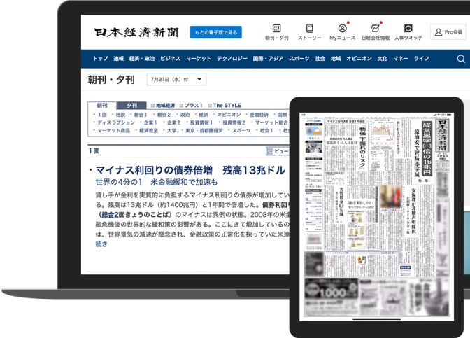 日本経済新聞の朝刊・夕刊をPC・スマホ・タブレットで読むことができます。「紙面ビューアー」を使うと、紙面イメージそのままでも読むことができます。