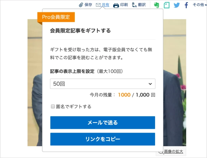 電子版Proのギフト記事機能を使えば、共有先で会員限定記事をお読みいただくことができます。(参考):日経の記事利用サービスについてはこちら