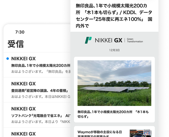 メール受信設定で「登録する」を選んでいただくと、NIKKEI GX のその日の注目記事や最新コンテンツをメールでお届けします。原則、月曜日〜土曜日の毎朝6時に配信します。