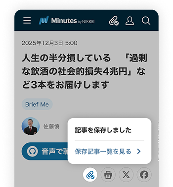 1日に更新される記事は3本程度。日経の記事から最重要テーマを編集者が厳選し、短い時間で読めるように構造的に整理してお伝えします。情報収集で挫折することはもうありません。