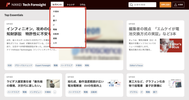 日経電子版アプリのタブの中にTech Foresightのタブがあるのでそこから読んでいます。